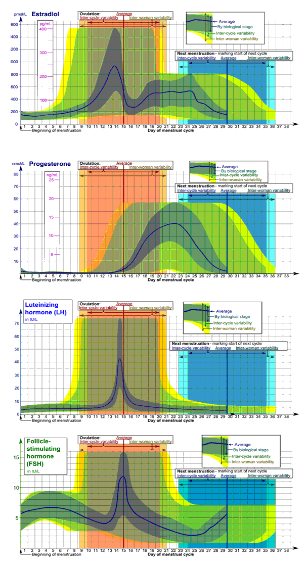 This chart can be used to evaluate the levels and balance of estradiol, progesterone, luteinizing hormone (LH) and follicle stimulating hormone (FSH) in women who are still cycling.